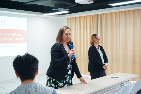 2019年4月2日,美国克拉克大学国际项目副经理Amy Daly Gardner、Sarah Lopolito一行来访beet365,在科教楼B座1004国际文化交流室和1005国际会议室分别与国际经济与贸易(中外合作办学)专业2018级新生和2016级即将赴美学习的员工见面,就专业学习,克拉克大学概况,赴美学习生活等方面进行交流。
