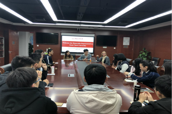 2019年4月2日,美国克拉克大学国际项目副经理Amy Daly Gardner、Sarah Lopolito一行来访beet365,在科教楼B座1004国际文化交流室和1005国际会议室分别与国际经济与贸易(中外合作办学)专业2018级新生和2016级即将赴美学习的员工见面,就专业学习,克拉克大学概况,赴美学习生活等方面进行交流。