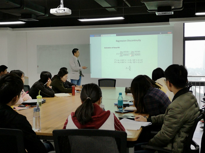 2019年4月7日至10日,公司“高级计量经济学2019春季研讨班”顺利举行。为期四天的研讨班共进行了七次讲座,由上海财经大学beet365常任教授、教育部“长江学者”特聘教授周亚虹老师主讲。授课内容包括计量经济学中的非线性模型、控制函数和相关方法、处理效应模型及其在中国经济问题中的应用等现代计量经济学前沿内容。公司全体一、二年级的学术型硕士和部分感兴趣的老师参加了该研讨班。