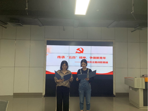 随即全体党员及预备党员进行了诗歌朗诵活动。同学们通过个人朗诵和集体朗诵的表现形式积极参与其中,声情并茂的表达了对祖国的热爱、对党的忠诚以及积极向上、敢于拼搏的精神风貌。通过此次活动,让全体党员和预备党员进一步增强了社会责任感、历史使命感和时代紧迫感,在新时代进一步赓续传承五四精神,以蓬勃的朝气、昂扬的锐气,为实现中华民族伟大复兴的中国梦努力奋斗。