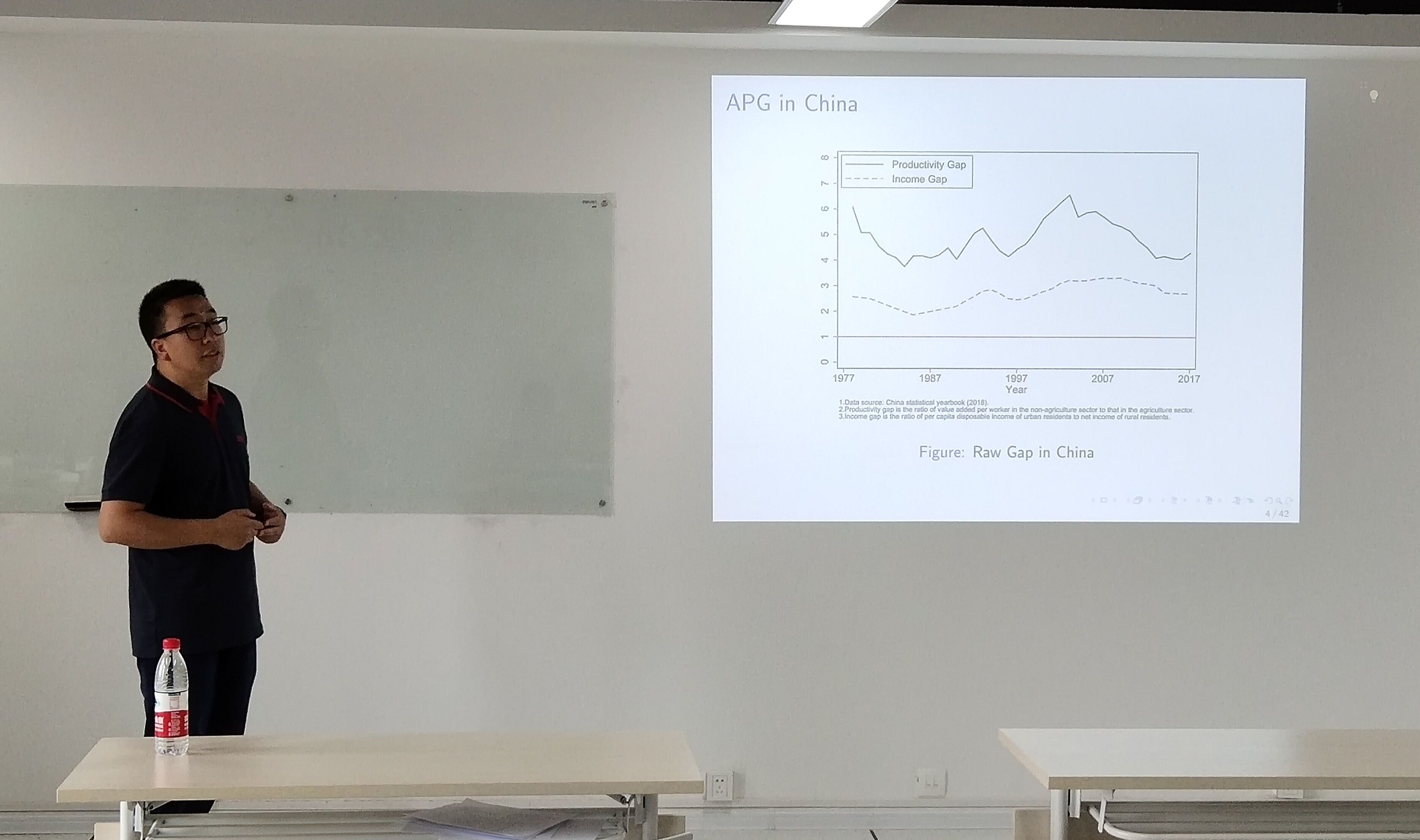 6月13日下午2点,在公司1006会议室,盖庆恩副教授为公司师生做了一场主题为《Selective Migration and Agriculture Wage Gap: Evidence from China》的精彩学术报告,近数十名公司师生参与聆听了此次报告。在此次报告中,盖庆恩副教授研究指出,我国农业部门的生产率水平明显低于非农业部门,这表明我国存在较为严重的城乡劳动人口流动障碍。该研究通过所建立动态的流动决策模型可以对上述现象进行解释,并使用国家定点跟踪调查数据,对上述现象进行全方位、多角度的仿真模拟分析。在此次报告中,公司师生还与盖庆恩副教授就该报告内容进行了精彩的问答互动。