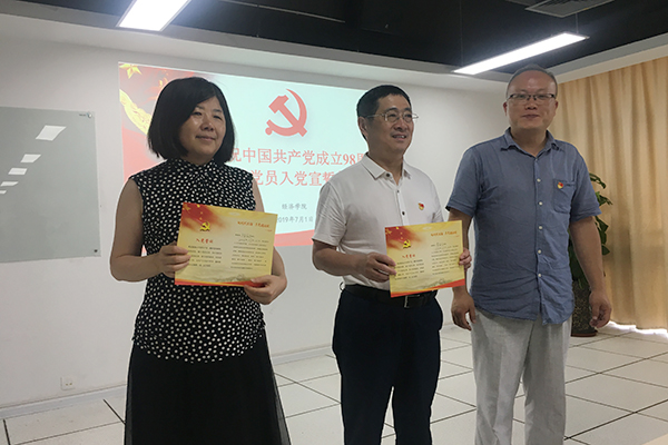 为庆祝中国共产党成立98周年,进一步深入学习贯彻习近平新时代中国特色社会主义思想,坚定广大党员的共产主义信念,增强党员党性意识,7月1日中午,公司在翡翠湖校区科教楼B座1004室举行庆祝建党98周年主题党日活动。公司相关负责人、教师代表、2019年新入党的员工预备党员及全体本科生、研究生老党员参加此次活动。