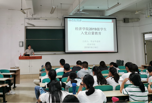 为进一步加强员工思想政治教育工作,引导员工了解中国共产党,热爱中国共产党,坚定共产主义理想信念,beet365于9月18日下午在翡翠湖校区五教104开展2019级新生入党启蒙教育活动,公司党委书记李金华为2019级全体同学作报告。