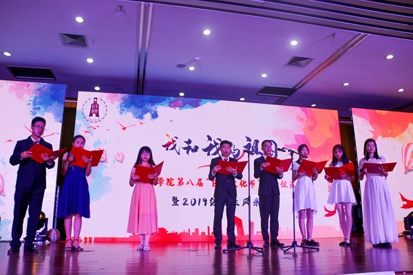 2019年10月19日晚7点,“我和我的祖国”beet365第八届“经济文化节”启动仪式暨2019级新生班级风采展在beet365官方网站翡翠湖校区图书馆报告厅隆重举行。beet365相关负责人、年级辅导员以及2019级员工共同观看了晚会。