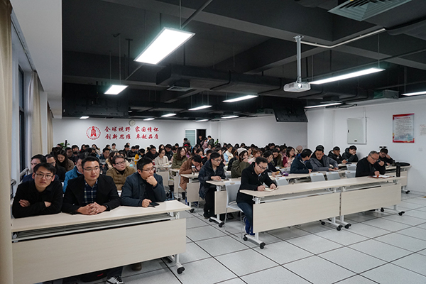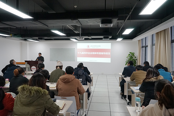 11月27日下午,公司学习十九届四中全会精神宣讲会在翡翠湖校区科教楼B座1004室举行,公司党委书记李金华作宣讲。公司教职工、研究生以及员工党员参加宣讲会。