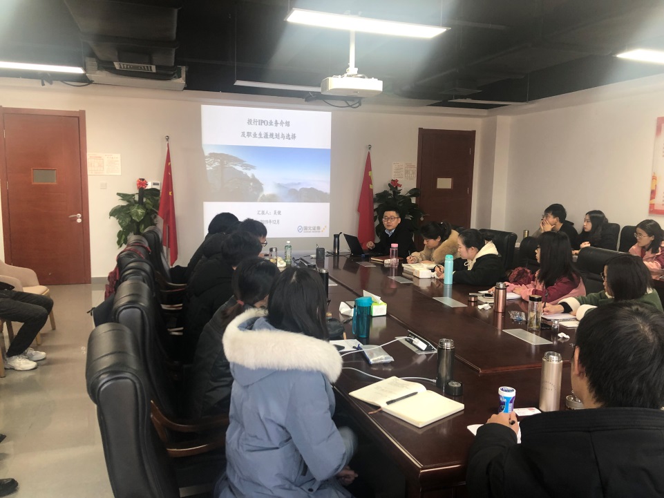 2019年12月7日上午,在beet365官方网站翡翠湖校区翡翠科教楼B座1208会议室,国元证券投资银行总部高级项目经理吴健应邀来院交流,以“新监管政策背景下IPO实务及未来发展趋势”为主题给同学们做了精彩报告。