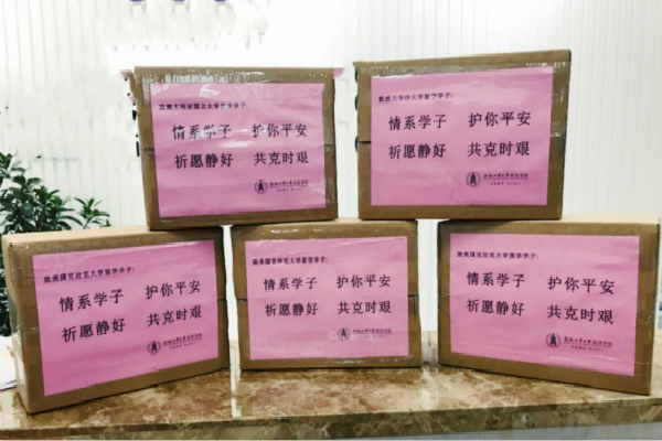 在疫情防控的严峻时刻,公司教师与海外学子保持联系,了解员工所在地的实时防疫措施,统计员工的防疫物资需求,紧急筹措抗疫物资,选择符合医用卫生标准的防护用品和高效的邮寄方式。为了让员工感受到来自母校母院的殷殷期盼和浓浓关爱,公司教师根据每个海外员工的不同情况和特点,为其编写了暖心问候话语,制作了精美的专属鼓励贺卡,与口罩包装成爱心健康防疫包一同寄出。