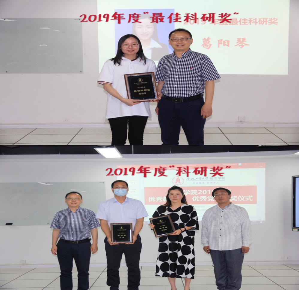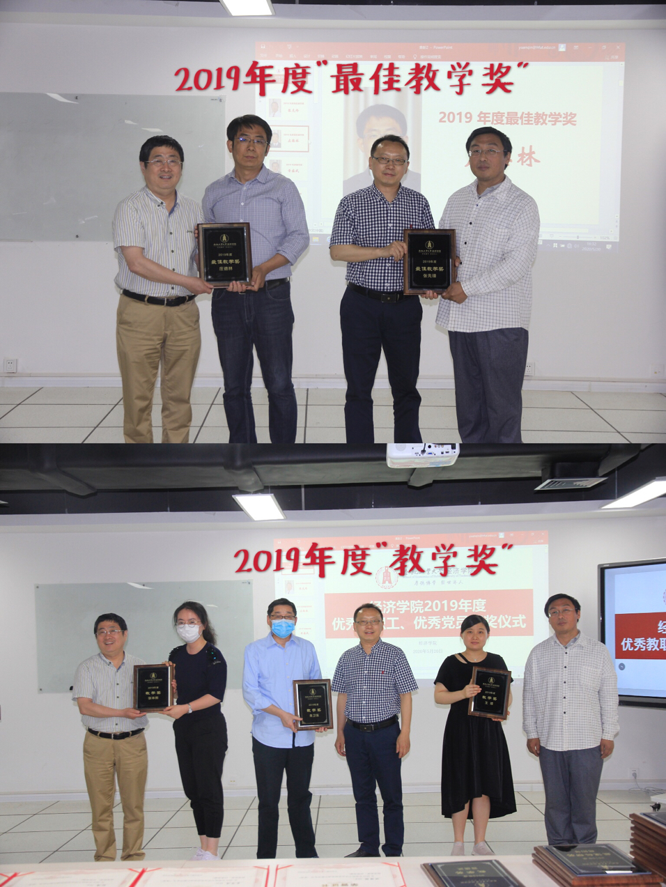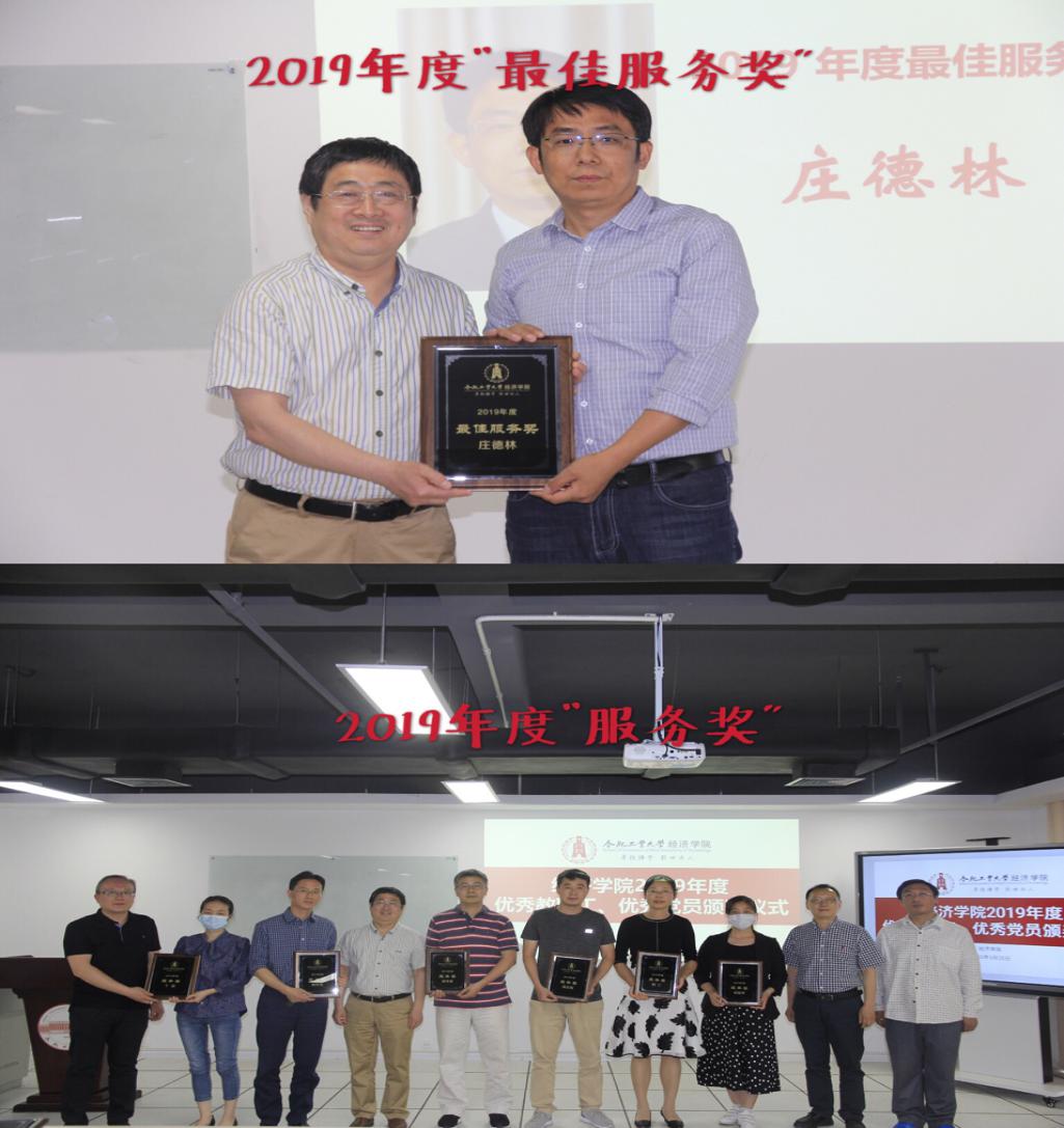 在随后进行的表彰仪式上,李金华书记宣读了《关于表彰2019年度优秀教职工的决定》和《关于表彰2019年度民主评议优秀党员的决定》。张先锋等2人获得“最佳教学奖”;葛阳琴获得“最佳科研奖”;庄德林获得“最佳服务奖”;朱卫东等5人获得“教学奖”,刘晴等2人获得“科研奖”,张根文等7人获得“服务奖”。洪结银等14位教工在2019年度民主评议党员中被评为优秀人员。院领导为获奖的先进个人颁发了荣誉证书。