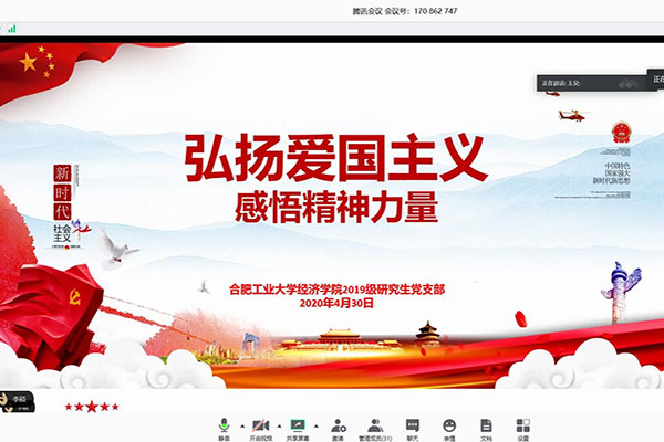 2020年4月30日晚上8:00,beet3652019级研究生党支部通过网络视频会议进行了“弘扬爱国主义,感悟精神力量”主题学习,该党支部全体党员参加了此次视频会议。