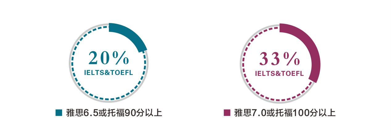 员工英语六级考试成绩500分以上的员工占比45%,雅思6.5分或托福90分以上的员工占比33%。