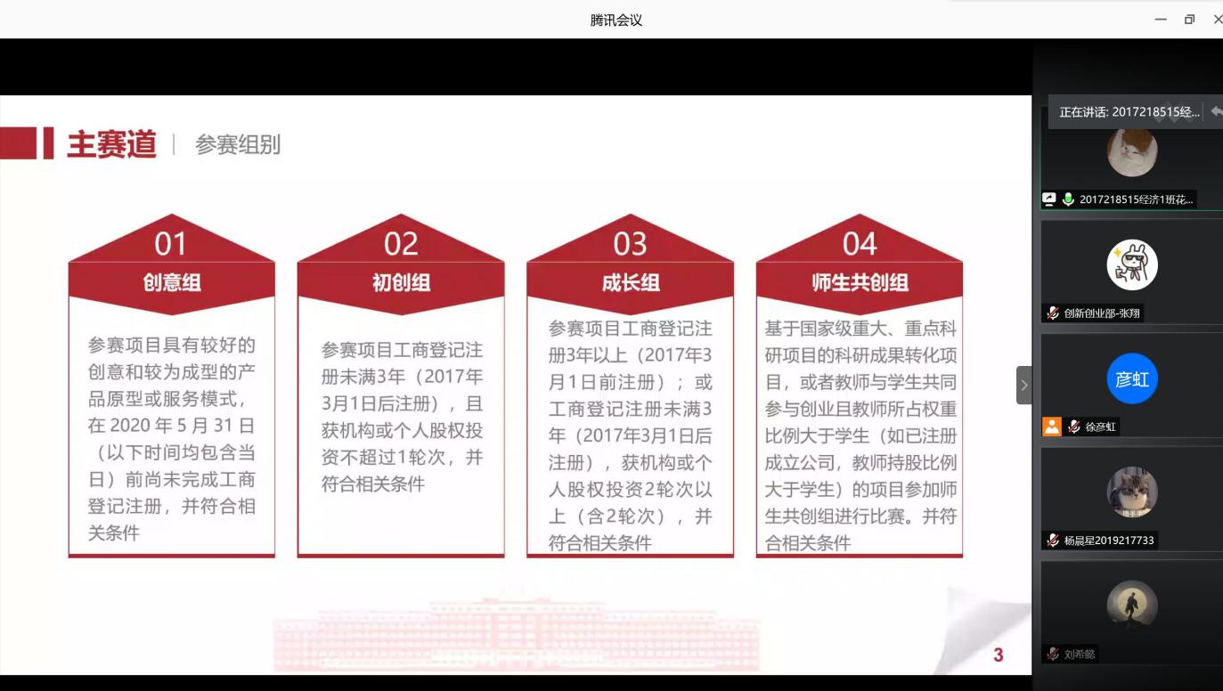 为了进一步增强员工创新创业能力,提高参加“互联网+”老员工创新创业大赛的积极性,6月30日下午4时,公司经济与贸易系线上组织召开了第六届“互联网+”老员工创新创业大赛动员会,系主任黄顺武老师、系团总支书记刘银红老师及辅导员夏芬老师均参加了本次动员会。