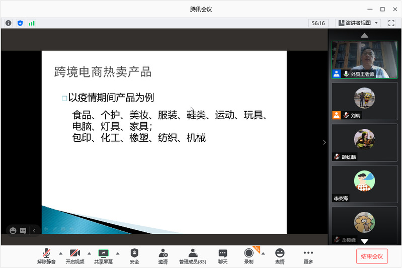 9月5日下午3点,中国国际贸易学会王斌老师,应邀在线为2018级、2019级国际经济与贸易专业本科生,带来了题为“跨境电商新动态与实战”的报告。王老师将跨境电商理论结合现实最新案例,围绕“传统外贸转型升级”“跨境电商热卖产品”“跨境电商实战案例”等议题,深入浅出地分析了跨境电商当前发展中存在的问题以及解决之道。