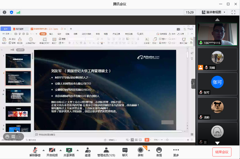 9月5日上午9点,阿里巴巴国际站安徽创始人之一、安徽大米网络技术有限公司CEO刘友军应邀在线为2018级、2019级国际经济与贸易专业本科生做了题为“跨境电商新机遇与外贸人才新需求”的报告。刘友军总经理分别从跨境电商的背景趋势与机遇、Alibaba外贸整体解决方案、疫情时代下的危与机、阿里巴巴全球化布局、跨境电商本土代表企业等五个方面,详细分析了新发展格局下跨境电商面临的挑战与机遇,以及安徽外贸人才需求的新变化。
