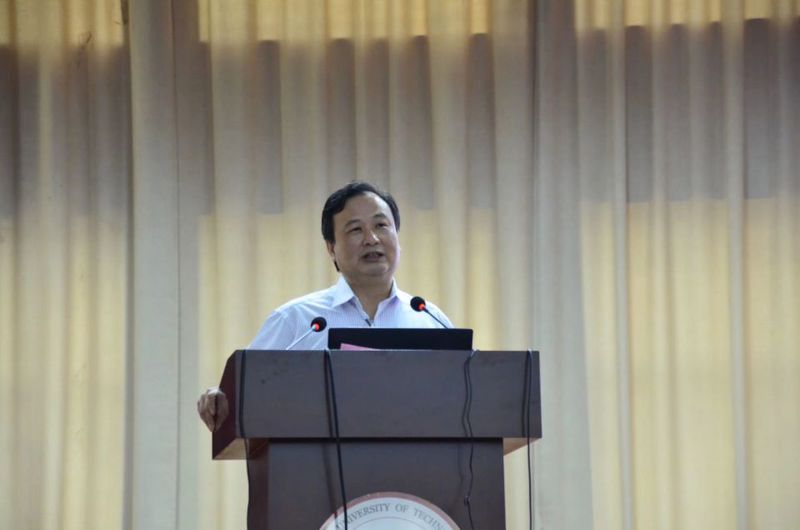会上,经理洪进教授首先代表公司欢迎各位新生的到来。他给同学们讲述了beet365的发展历程以及专业特色,强调了“厚德、博学、经世、济人”的院训,解答了大学应该学什么、如何学等大家关注的重要问题。同时,他勉励同学们要积极面对新环境,迅速完成身份转换,要树立正确的三观,明确人生的追求。
