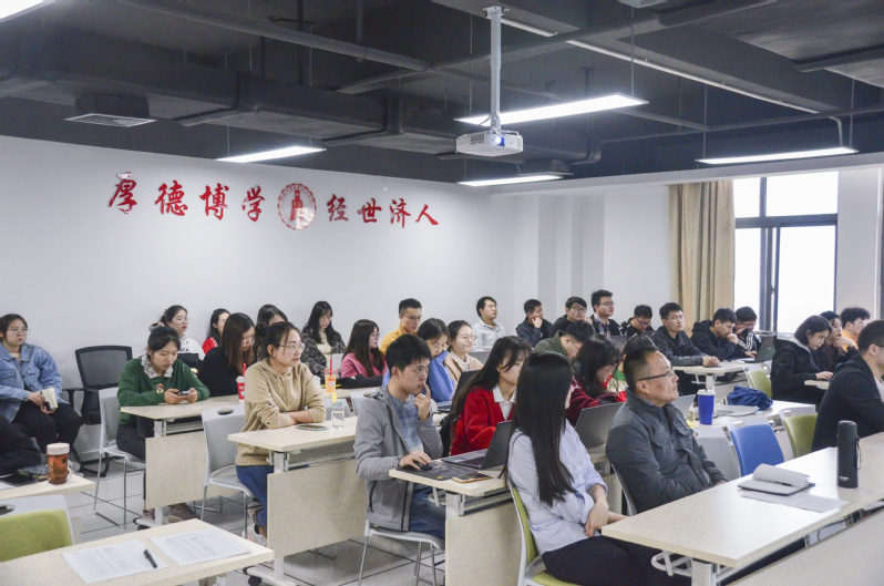 10月26日下午,公司“厚德•经世大讲堂”在翡翠湖校区科教楼B座1006室举行。本期报告会邀请了国元证券股份有限公司金融产品部首席投资顾问丁猛主讲,报告会的题目是资本市场发展新态势与投资策略演绎,公司60余名金融专业硕士研究生和其他同学参加报告会。