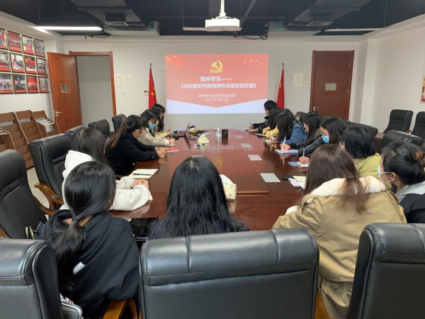 2021年3月12日下午,经济学专业本科生党支部在科教楼B座1208室集中学习了《深化新时代教育评价改革总体方案》(以下简称《总体方案》),并在会上交流讨论了新学期党支部工作计划。会议由党支部书记严瑾主持,支部其他成员参与了本次学习交流。