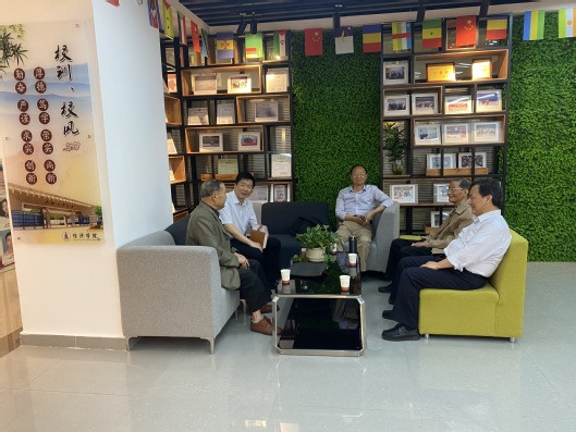 座谈会前,公司经理洪进、党委书记张炳武与三位老领导、老教授亲切交流。