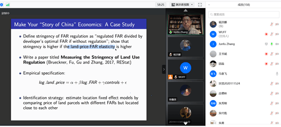 在此次报告中,张俊富教授围绕什么是好的经济学研究、如何撰写经济学研究成果、如何发表经济学研究成果等内容展开讲解。张俊富教授指出,经济学家是记录经济事实、描述经济现象、构建经济理论并用经济理论回答现实经济问题的社会科学家,要力争通过新的数据、新的方法做出有助于学界同行深化相关经济问题理解的研究,要善于将“中国故事”一般化为经济学故事,只有做出好的研究才能够有好的发表。此外,张俊富教授还特别强调了论文写作的重要性,并详细讲解了参加学术会议、进行论文投稿与修改、开展合作研究等内容的注意事项。在报告接近尾声时,张俊富教授还与参加此次报告的师生展开了一些问答互动,并耐心地回答了参与者所提出的每一个问题。最后,庄德林副经理总结了此次报告,并再次表达了对张俊富教授做客此次讲坛的感谢。