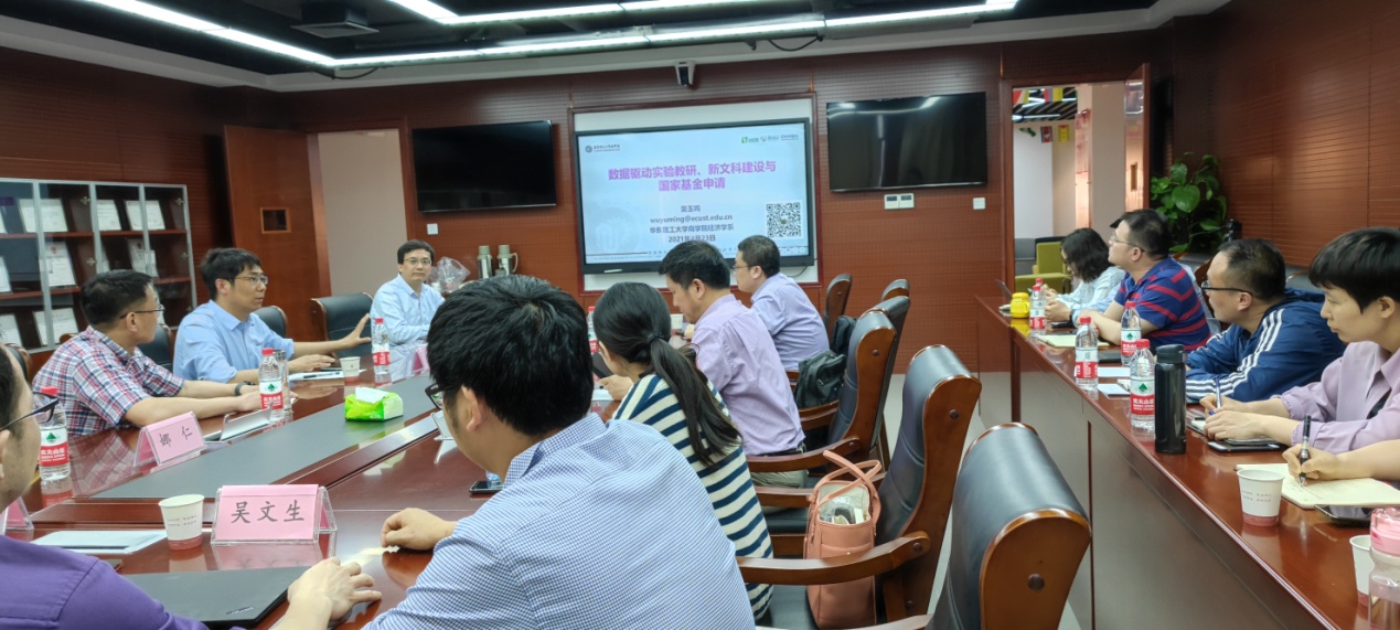 吴玉鸣教授以“数据驱动实验科研、新文科建设和国家基金申请”为题,从实验与科研的密切关系入手,探讨如何将科研成果转化成实验案例;分析实验教学如何支撑科研及拓展新文科建设,进一步探讨专业建设、实验建设和新文科建设之间的交叉融合关系;最后结合自己申报的基金项目对申报书撰写的细节问题与与会人员展开讨论。