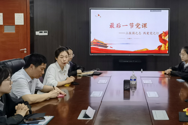 为做好毕业生文明离校教育工作,6月17日下午,公司在毕业生党员中开展了以“立报国之志,践爱党之行”为主题的“最后一次党课”。公司党委书记张炳武、党委副书记兼纪委书记谢晶晶、毕业班辅导员及全体2021届本科生党员参加了此次活动。