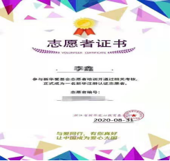 李鑫同学多次参加支教、环保等各类志愿活动,在2020年成为了新华爱基会的一名注册志愿者。在参加志愿活动中,李鑫同学开始思考,到底什么样的志愿活动才是真正有价值的活动?不仅是落实螺丝钉精神,在需要的地方,做不起眼但有意义的事,更是发挥弘扬和传播作用,让更多的人自愿加入到志愿者群体当中,为构建社会主义文明社会添砖加瓦。作为一名志愿者,李鑫同学希望每一个志愿者初心不改,坚持做有价值有意义的事,各自在不同的领域发挥志愿者价值!