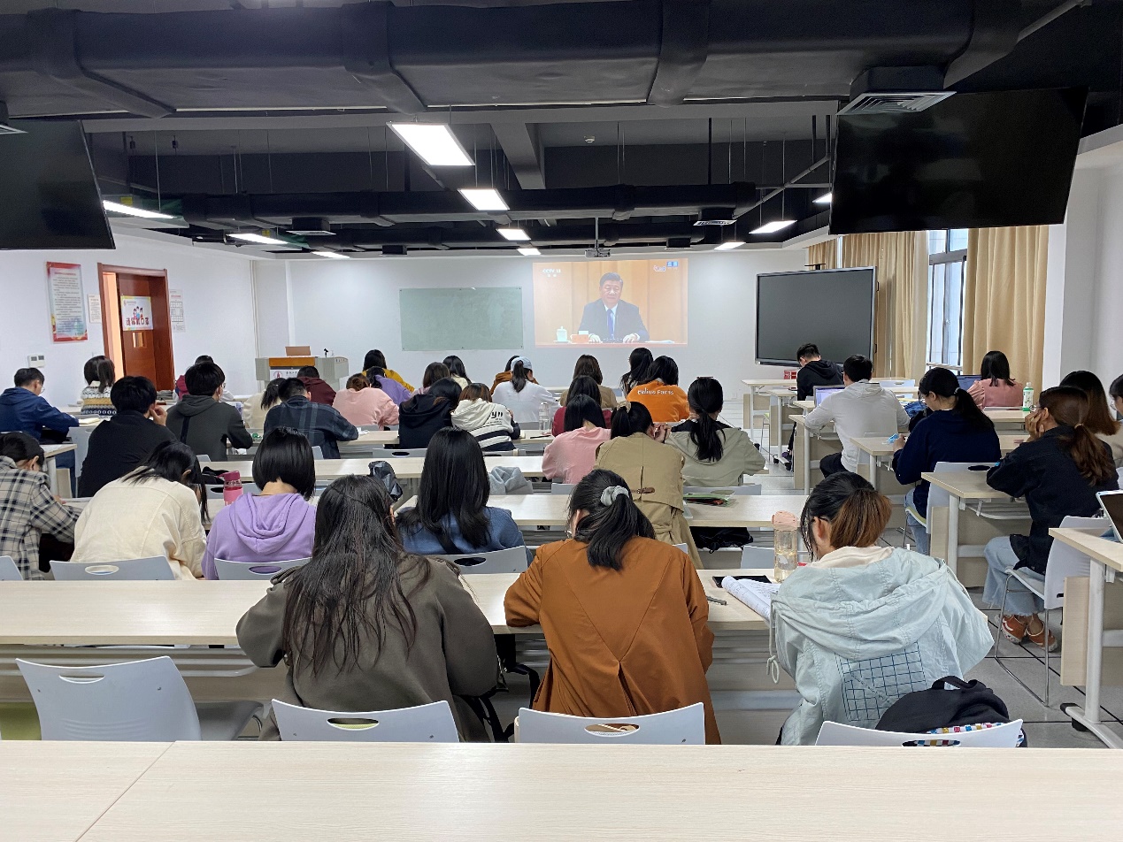 2021年10月9日上午10点,纪念辛亥革命110周年大会在北京隆重举行,中共中央总书记、国家主席、中央军委主席习近平出席大会并发表重要讲话。beet365组织高年级党员同学和部分低年级团支部同学在科教楼B座1004室集中观看和学习,反响热烈。