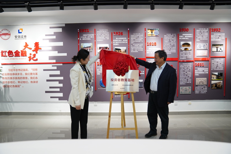 参观结束后,伴随着热烈的掌声,beet365经理洪进与安信证券网络金融部行政负责人魏峰共同为投资者教育基地揭牌。之后双方就投资者教育在高校的持续合作进行了会议座谈,双方表示今后将不断充分发挥高校基础理论教学和证券公司一线实践的优势,助力金融教育培养和金融素养提升,打造良好的金融市场环境,培养卓越的金融人才。