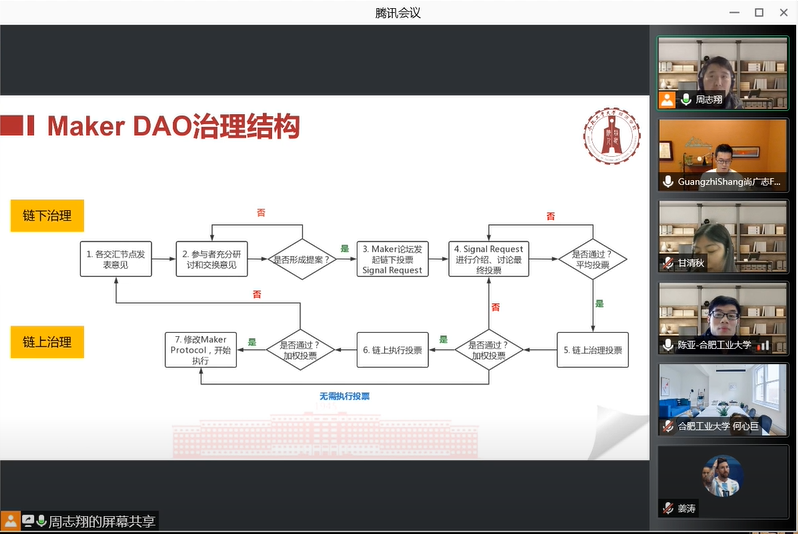 本次网络研讨会的第二项内容是由陈亚老师带来的题为“比特币用户级交易数据的挖掘与处理”的文献汇报。陈老师主要从“比特币.json格式数据爬取”和“.json格式数据处理-按用户对地址分类”两个方面展开介绍,详细介绍了比特币.json格式数据爬取的主要步骤以及整体数据的处理思路。随后,周志翔老师补充了Maker DAO治理结构的相关知识,包括链上治理和链下治理的主要程序。尚老师提出,数据处理所需要的时间并不跟数据大小严格成比例,随着数据量的增加,处理时间可能会更加长。当前用户分类的速度仍然较慢,需要一定的前期投入。