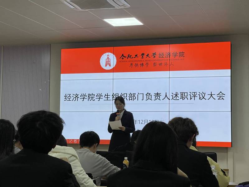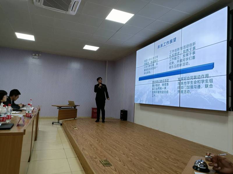 会议首先由盛鸣宇老师致辞,他希望本次会议能提升部门负责人综合能力,促进部门间的了解交流,相互学习,共同进步。随后,团学组织各部门代表依次上台述职,结合本学期的工作情况与所遇问题进行了全面系统分析,对部门未来发展做出调整改进计划。提问环节中,现场老师以及主席团成员针对答辩内容进行提问,各部门代表一一作答,评委们也相应给出了自己的建议与改进措施。最后,但泱泱老师对本次大会进行了总结致辞,肯定了团学组织各部门本学期的工作,并对各部门成员给予了鼓励与期望,希望团学组织每个部门能够同心协力,携手共进。