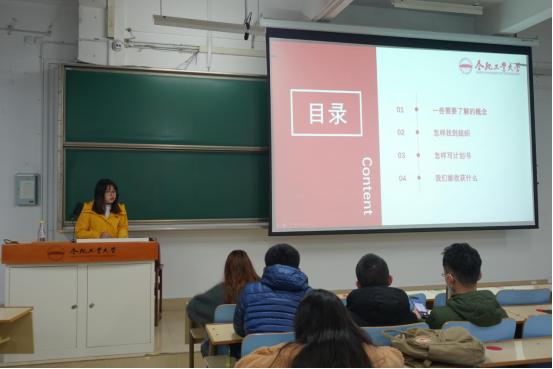 李帅航同学分享了自己参加创业大赛的经验,带领同学们解读了2022年“挑战杯”创业计划竞赛的通知要求,详细介绍了项目策划书的结构组成、内容撰写和注意事项。李昱萱同学结合自身的竞赛经历,和大家分享了参加比赛的意义、如何选题、如何组建团队、个人在团队中如何发挥作用等内容。吕焓同学分享自身的参赛经历,为大家讲述了自己参加比赛的心路历程和成长收获,鼓励同学们积极参与创新创业竞赛,通过比赛增长见识,开拓视野,提升创新实践能力。