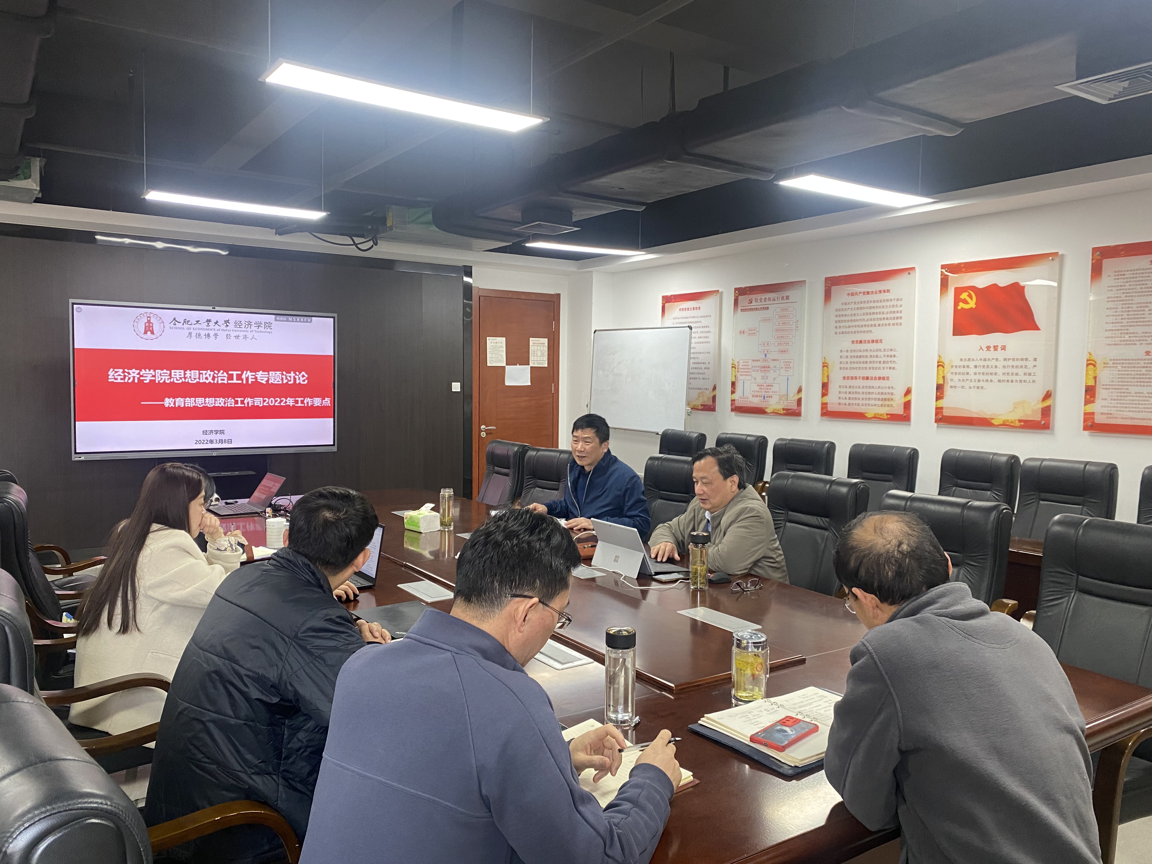 研讨会上,参会人员紧扣教育部思想政治工作司2022年工作要点,结合自身工作实际,对标新时代思想政治工作要求,围绕推进党建思想政治工作与业务工作双融合双促进、做好基层党支部建设工作、打造思想政治工作精品项目等方面开展了热烈讨论,并就如何做好教师和员工的思想政治工作纷纷交流发言。参会人员表示,做好高校思想政治工作,要积极开展教师支部与员工支部共建活动,以“十全育人”体系为导向,思想上对育人工作高度重视,行动上落实育人要求坚实有力,为高质量推进“三全育人”改革任务夯实基础;要加强学理化研究,动员支部成员从当前社会政策热点、科学研究方向出发,在支部学习活动中分享观点,交流看法;要利用“三下乡”社会实践等实践活动为契机,将经济、金融与思想政治工作结合,创新形式,提升高度。