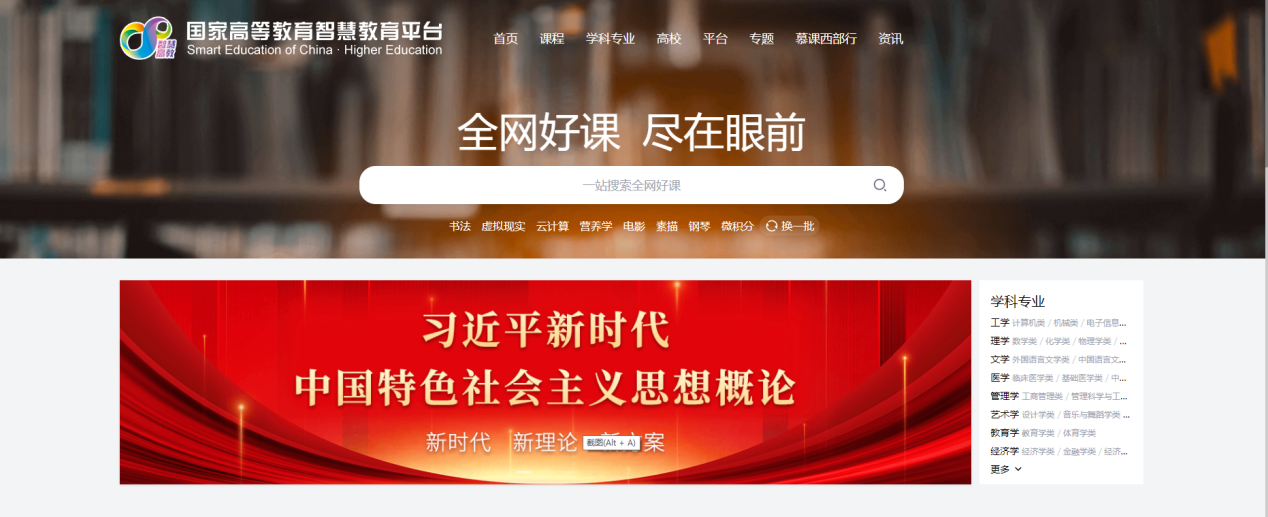 智慧高教平台集合了中央、地方、高校和社会力量建设的20个综合类和专业类高等教育公共在线课程平台,分批次接入5万门优质在线课程,提供一站式搜索与智能推荐全网好课服务。