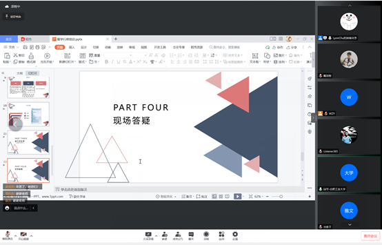 4月28日晚,国家留学基金委东方国际教育交流中心朱瑞玲老师受邀为公司开展留学行前线上培训,郑园琴主持会议。国际教育中心主任戴前智及中心全体教师、2019级辅导员但泱泱、入选2022年克拉克大学“3+1+1”项目的中外国贸员工及家长、公司准备留学的本科生和硕士生等近30人参加了此次会议。