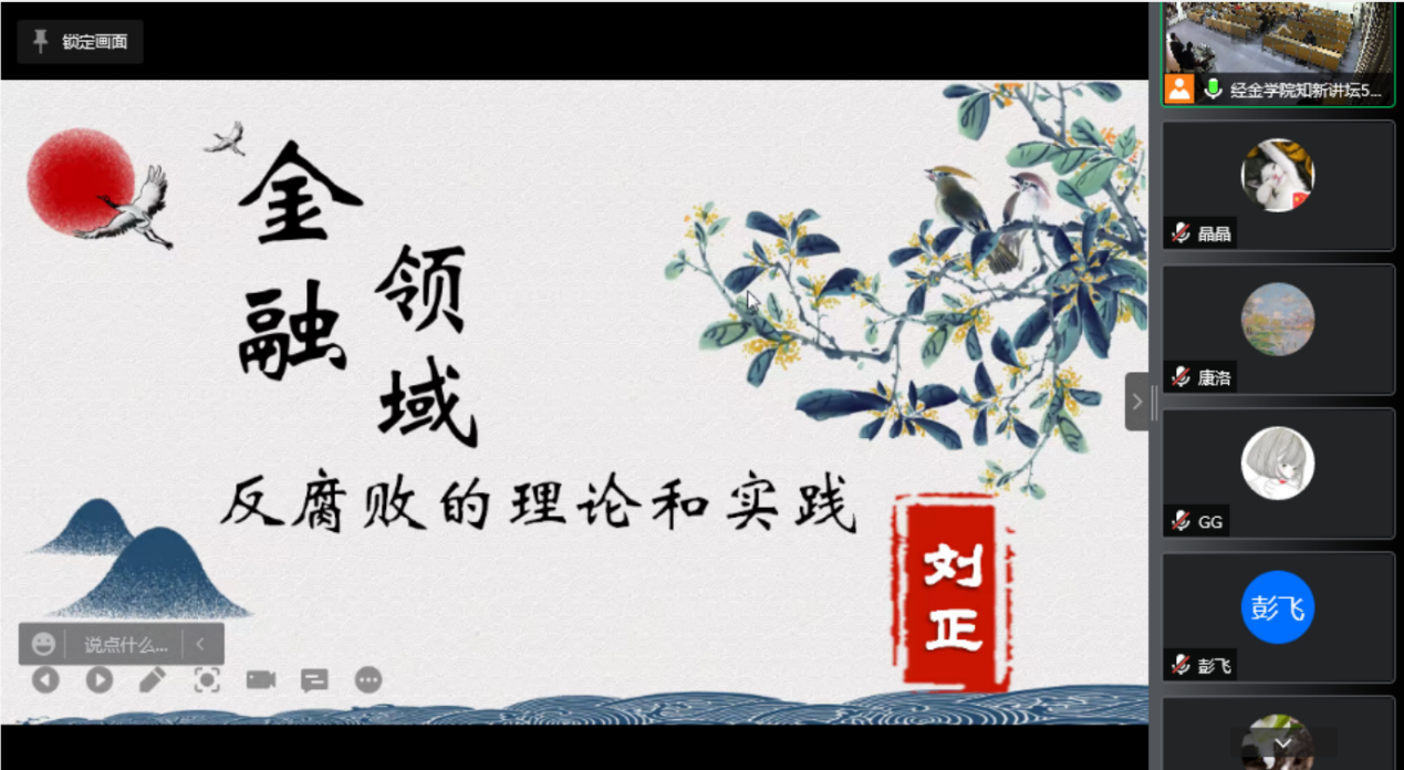 4月27日,西安交通大学经济与金融公司举办以“金融领域反腐败的理论和实践“为主题的清廉金融文化讲座。为推动公司教工廉洁从教、廉洁从业,引领青年员工廉洁从学、廉洁成长,根据公司纪委安排,特组织公司纪委书记、纪委委员和各支部纪检委员在线上参加学习。