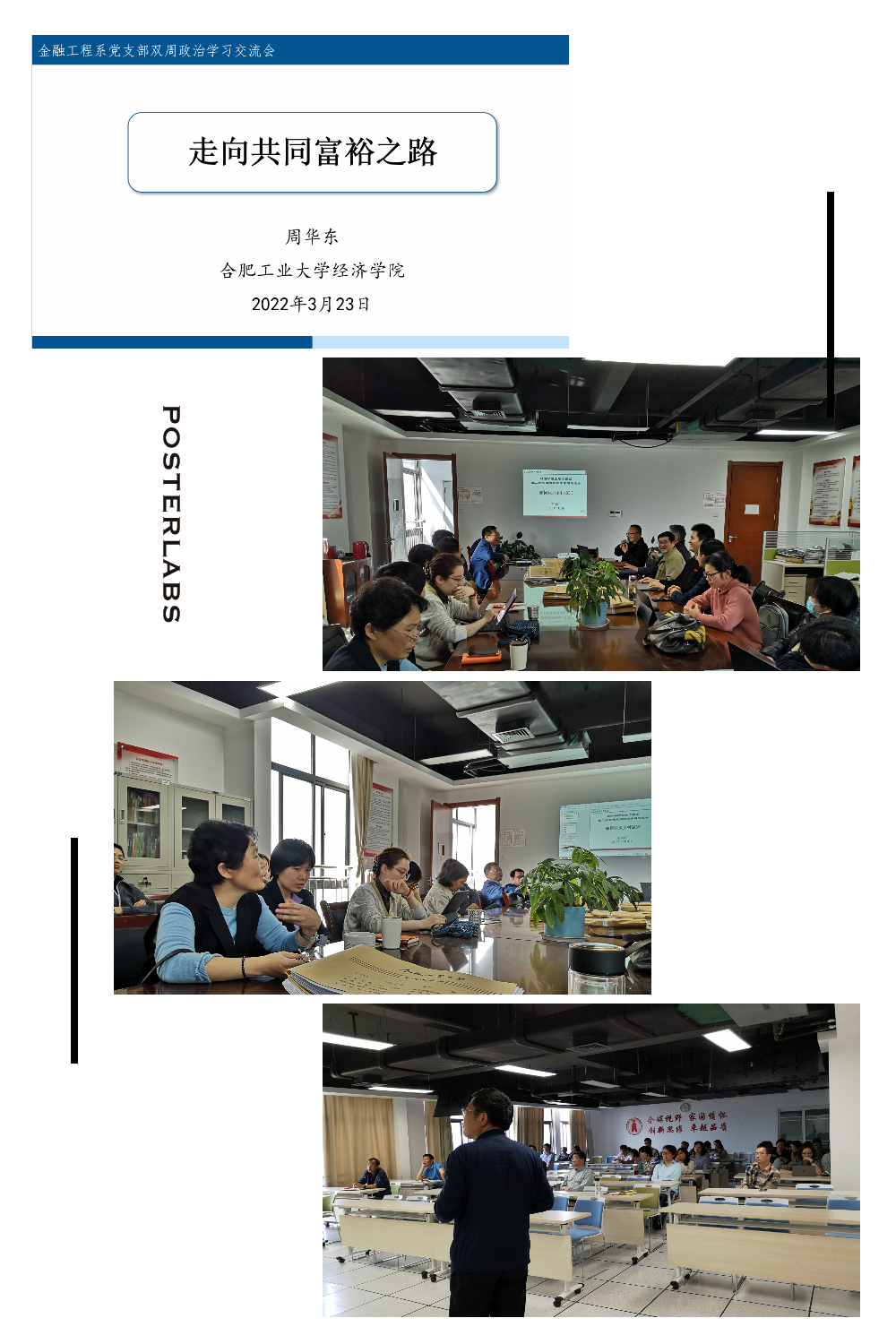 本学期金工系党支部围绕“共同富裕”“乡村振兴”“金融风险”已进行三场专题学习,分别由周华东老师领学“走向共同富裕之路”,王海涛老师领学“如何认识乡村振兴”,张本照老师领学“从俄乌冲突看我国国际金融风险”。老师们结合自己的研究方向和兴趣,围绕新时代中国面临的重大问题和党的重大方针政策,进行了相对系统深入的阐述分析,引发了与会老师的热烈讨论,实现了党建与业务工作深度融合,取得了较好的学习效果。