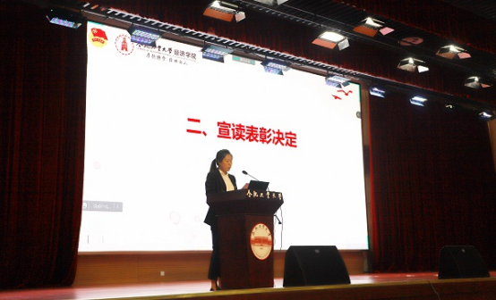 在表彰仪式上,获得校级和院级先进集体和先进个人荣誉称号的代表依次上台接受表彰,公司党委书记张炳武、党委副书记兼纪委书记谢晶晶先后为获奖代表颁发证书并合影留念。