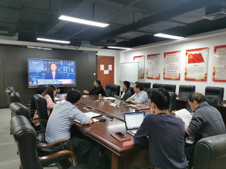 中心组成员共同收听收看《习近平在中国人民大学考察时强调 坚持党的领导传承红色基因扎根中国大地 走出一条建设中国特色世界一流大学新路》的新闻报道,深刻领会习近平总书记重要讲话的重大意义、丰富内涵和精神实质。与会同志围绕如何落实立德树人根本任务,如何加快建构中国自主的知识体系,如何做员工为学、为事、为人的大先生,如何打造高精尖水平思想政治理论课等方面进行深入交流讨论。