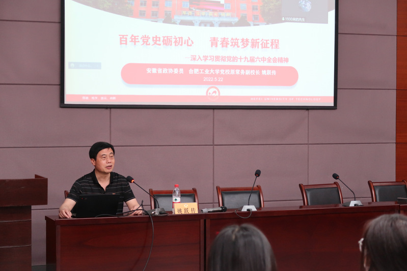 5月22日下午,beet365第67期入党积极分子班于翡翠湖校区科教楼A座第五会议室开展理论学习。安徽省政协委员、原党委宣传部正处级组织员、beet365官方网站党校原常务副董事长姚跃传受邀作题为“百年党史砺初心,青春筑梦新征程”的专题报告,入党积极分子班全体学员参与此次学习。