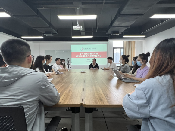 研讨会由院团委副书记、学工办副主任、研究生辅导员叶荣菁主持。会上,参会学员逐一发言,结合学习感悟和个人实践,畅谈心得体会。同学们认为,回顾建团百年的光辉历程,共青团员是在党的直接关怀和领导下诞生,共青团的初心和使命就是坚定不移跟党走,为党和人民奋斗,作为青年员工党员,要坚定不移听党话、跟党走,为实现民族复兴贡献青春力量。同学们表示,作为新时代的青年,要勇于承担时代赋予的历史责任,秉持坚定信念,饱含激情和青春朝气,志存高远,脚踏实地,不畏艰难险阻,努力成长为有理想、敢担当、能吃苦、肯奋斗的新时代好青年,用实际行动回应习近平总书记的期许。