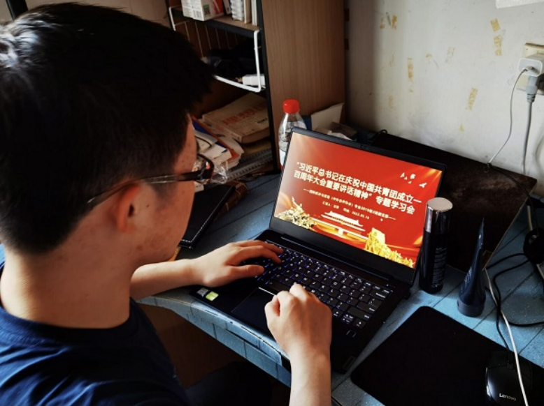 团支书首先带领同学们重温习近平总书记在北京人民大会堂就庆祝中国共产主义青年团成立100周年大会上的讲话内容,随后通过PPT等方式展示了共青团成立的背景和历史事件、共青团的发展阶段、宝贵经验,提出了对共青团的四个希望和新时代对团员、团干部的要求。