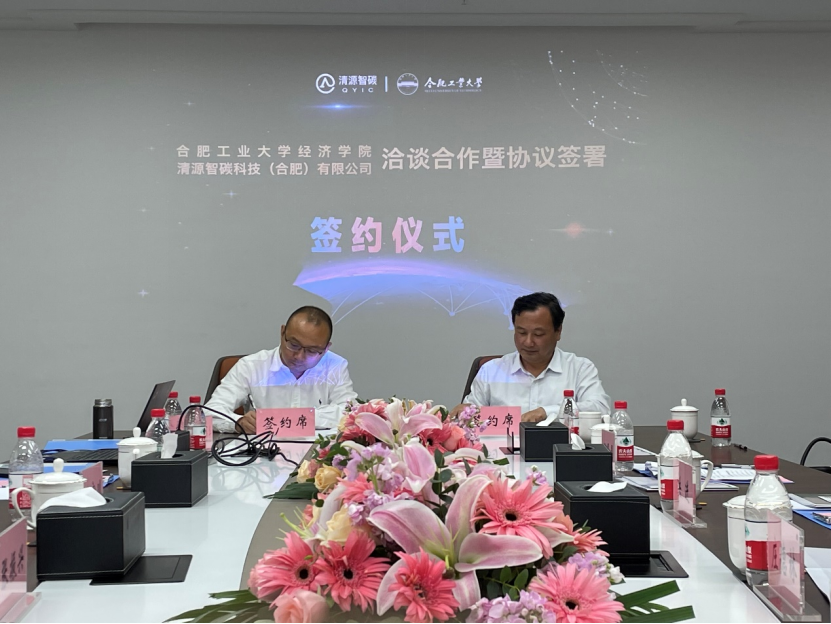 5月27日上午,公司与清源智碳科技(合肥)有限公司(简称:清源智碳)实践教学基地签约仪式在经开区智能科技园举行。经开区管委会副主任毛芸芸、经开区投促局副局长张振兴、公司经理洪进、副经理庄德林、公司党委副书记兼纪委书记谢晶晶等有关人员、清源智碳总经理燕宏川、副总经理陈炜华、总经理助理韩冰等公司骨干人员出席签约仪式。洪进经理与清源智碳总经理燕宏川代表双方签订了合作协议。