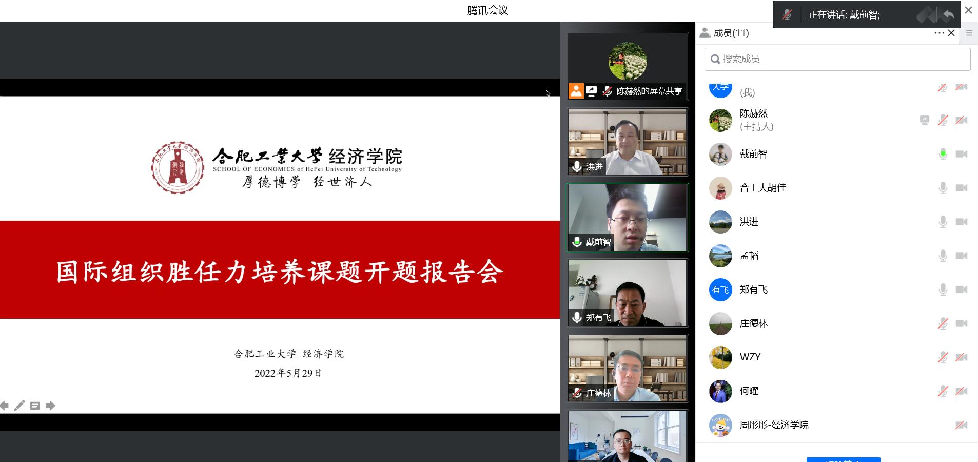 5月29日,公司国际组织胜任力培养课题开题报告会在线上顺利举办。南京信息工程大学原董事长助理、雷丁公司原经理郑有飞教授,东北财经大学国际商公司执行经理孟韬教授,吉林大学莱姆顿公司副经理何曜教授作为专家组成员对项目开题进行了评审。洪进经理代表课题组进行开题报告。校国际事务处副处长胡佳,副经理庄德林,国际经济与贸易系代表以及国际教育中心全体人员参会。
