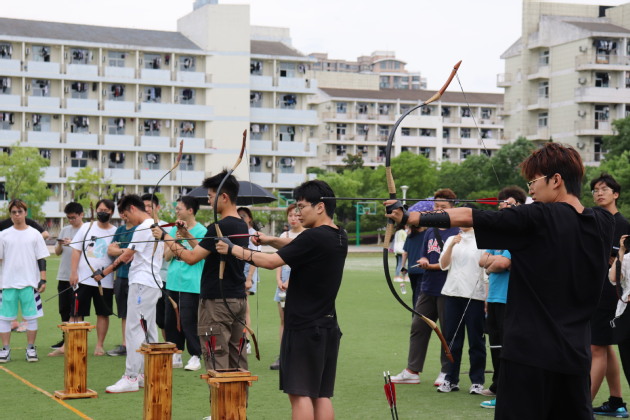 本次趣味运动会共设置了射箭、拔河、四人五足和旱地龙舟等9个项目。活动中,员工齐心协力,配合默契,取得一个又一个优异的成绩,周围员工积极为班级加油,掌声和欢呼声不断。最终经过各项目的角逐,经济学21-1班、国际经济与贸易20-1班、金融工程21-2班分获集体前三名。