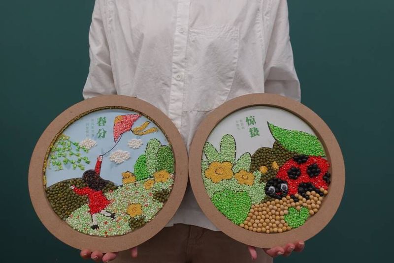 本次活动围绕“二十四节气”主题开展设计,员工们发挥自己丰富的想象力和创造力,制作属于自己的豆子画。活动中使用准备好的黑豆、红豆、粘米、黑米、小米等五谷杂粮粘成主题突出、寓意深刻、美观大方的豆画作品。相关作品将赠送给关爱自闭症儿童志愿基地的小朋友们。