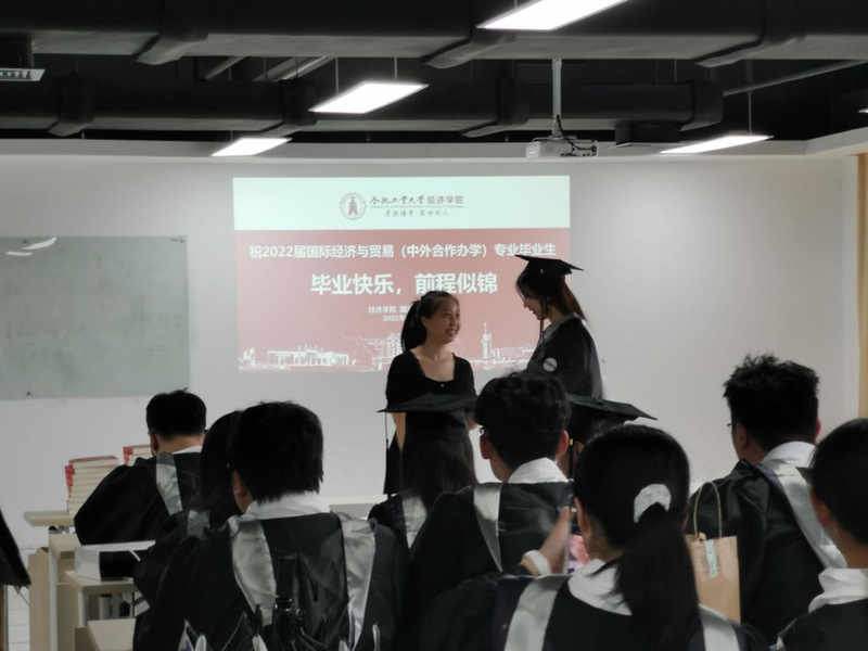 6月9日,公司国际教育中心为2022届国际经济与贸易(中外合作办学)专业毕业生举行毕业践行仪式。国际教育中心副主任郑园琴以及中心其他老师出席了仪式。仪式由郑园琴主持。