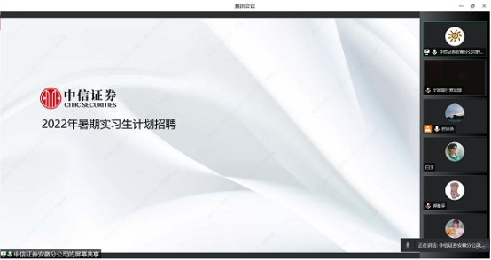本次实习对接会邀请了中兴证券、国元证券、招商银行、宁波银行、九江银行、兆尹科技等11家优质企业参会,吸引了100多名本科生和研究生参加。各用人单位通过网络平台依次进行企业介绍、实习生招聘宣讲,同学们认真聆听,了解用人单位招聘需求,积极提问,气氛热烈。公司同时建立实习对接会联络群,为用人单位和员工搭建进一步交流的平台。