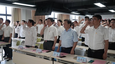 活动在庄严的《国际歌》中开始。入党宣誓环节,党员同志们庄重肃立,举起右拳,面对党旗庄严宣誓,表达了对党的忠诚以及为共产主义事业奋斗终身的的理想和决心。宣誓结束后,公司党委委员、教工党支部书记为新发展的党员逐一发放了党徽、《中国共产党章程》和《共产党宣言》。