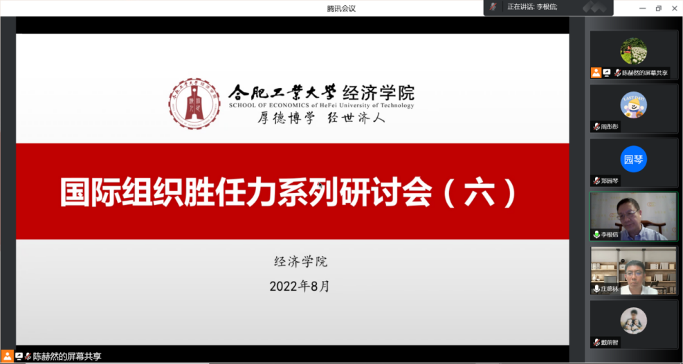 讲座结束后,全球胜任力培养主题研讨会在线上举办。李根信、公司经理洪进、副经理庄德林、国际经济与贸易系部分老师及国际教育中心全体人员参加了此次研讨。