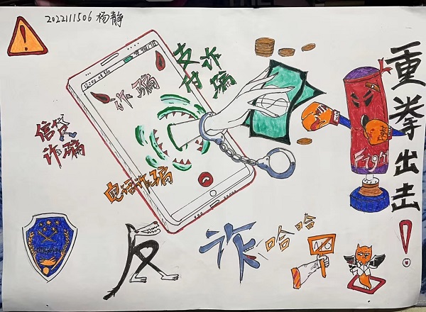 此次活动同学们积极参与,创作热情高涨,在海报标语的制作过程中提高了反诈意识和能力,营造了防范电信网络诈骗的良好氛围。