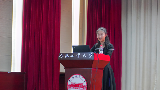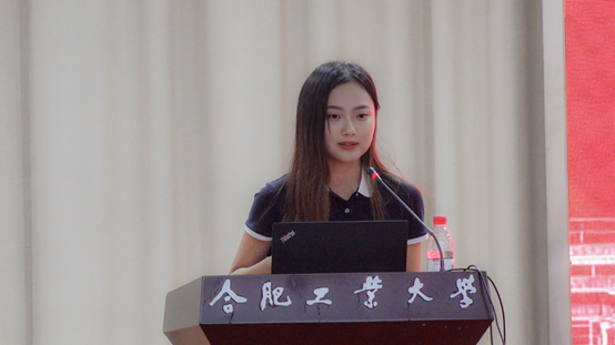 毕业班员工代表方楚乔英文发言,她结合个人免试推荐至北京大学攻读硕士研究生的经历,向在座员工分享项目求学体验和学业规划。她认为,项目中外籍高水平团队、多元化教学模式、国际化课程教学、全面化考核方式等有助于培养员工的创造性思维和批判性思维能力,激发员工潜能。此外,丰富的英语课堂在扎实员工专业知识的同时提升了员工的英语水平。她鼓励学弟学妹们要尽早明晰个人规划,充分利用项目国际化平台资源,扎实前行,为梦想不懈奋斗。